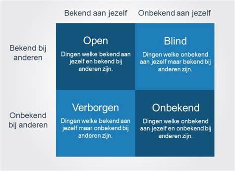 Het Johari Venster is een tool die je kan helpen bij het geven van feedback. Het geeft namelijk inzicht in de handelingen van anderen, in combinatie met jouw eigen handelen.